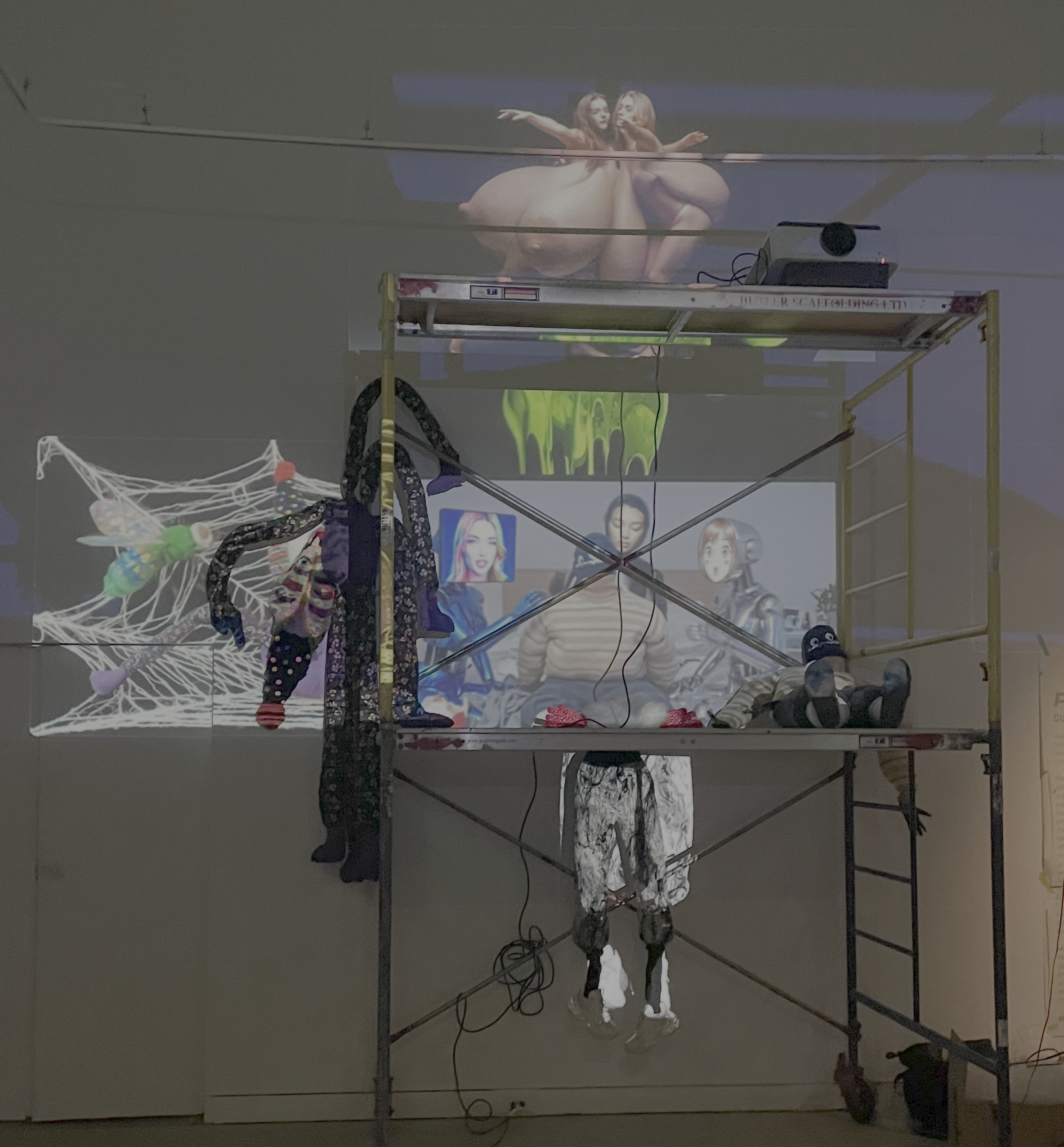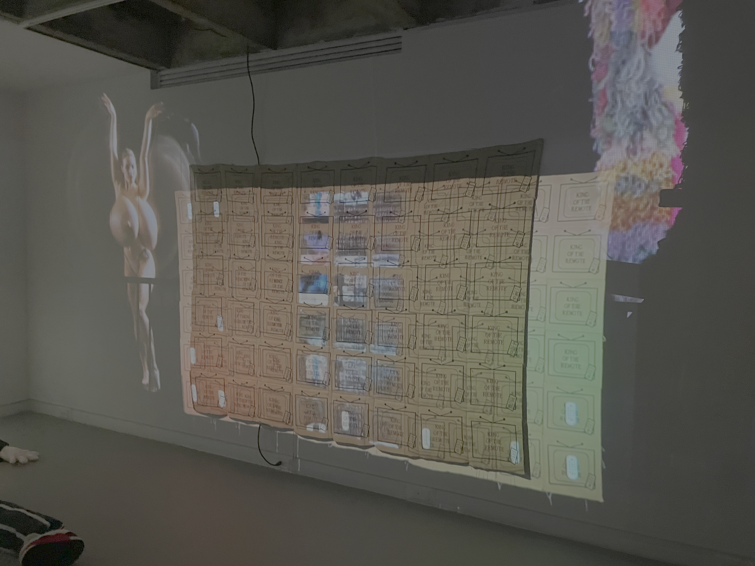 This show captures the spirit of the current media moment in its entirety: the saturation, the collapse of signal into noise, the total overlap of bodies, images, myths, markets, and desire.